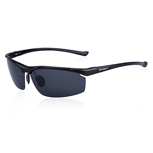 Best Seller! SUNGAIT Designer Fashion Polarized Sports Sunglasses for Men with Half Metal Frame (Black Frame Gray Lens) Review